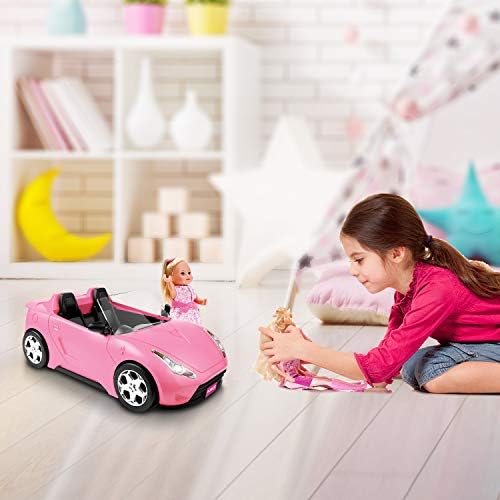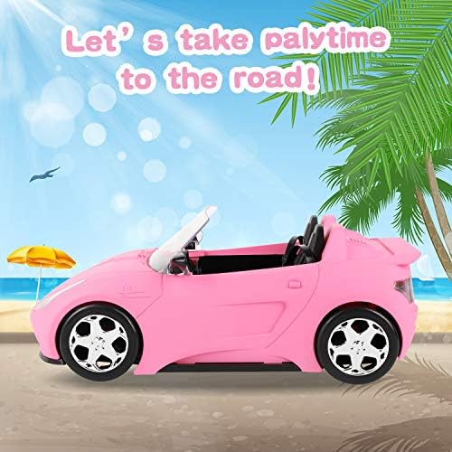AOKESI Convertible Car, Pink Convertible Doll Vehicle with Working Seat Belts Dolls Toy Car for Dolls Accessories Set Great Gift for Girls