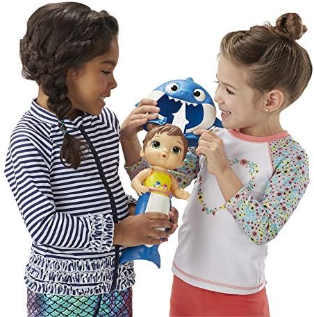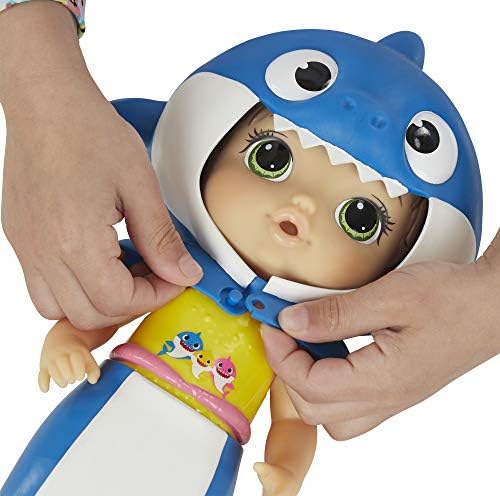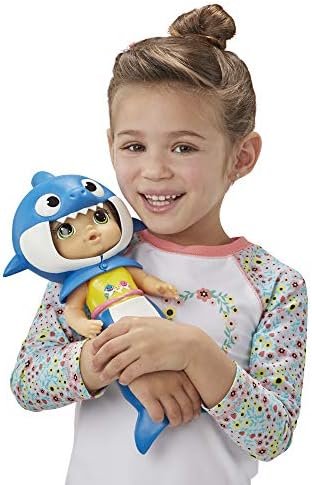 “Baby shark, Doo Doo Doo Doo Doo Doo! ” dress your baby shark doll in her adorable removable shark tail and hood, then have fun playing with her in and out of water! Kids can't resist the baby shark song and dance by pinkfong, and they will love making a splash with their baby shark doll by Baby Alive! Copyright smartstudy co., Ltd. All Rights Reserved. Pinkfong is a licensed Trademark Of smart study co., Ltd. Baby Alive and Hasbro all related terms are trademarks of Hasbro.