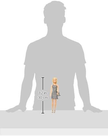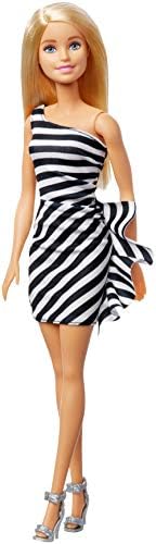 Barbie doll is always on the best-dressed list, and this trendy look is Barbie signature style! With a one-shoulder bodice and ruffled skirt, her dress is perfect for all kinds of events, from Casual girls' Night out to a fancy premiere party. The classic colours and bold stripes add modern fun, and silvery shoes complete the outfit with another stylish touch. Young storytellers can explore the world with Barbie doll dressed in this versatile look, because when a girl plays with Barbie, she imagines everything she can become! Includes Barbie doll wearing fashion and accessories. Doll cannot stand alone. Colours and decorations may vary.