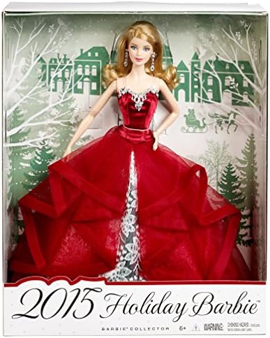 Continuing a beloved yearly tradition that's endured for more than 25 years, this keepsake 2015 Holiday Barbie doll is festively dressed to ensure this will be the most glamorous season of all. Inspired by merry colors and jingling bells, Barbie wears a dramatic garnet-colored gown with cascading ruffles and an underskirt of silvery foil brocade. The strapless bodice is trimmed with silvery leaves accented with clear, sparkling gems. Her hair has glamorous loose curls that showcase a pair of ornate earrings. Comes in premium gift-able packaging so it's easy to make holiday wishes come true for girls of all ages. Each doll sold separately.