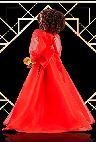 Barbie doll is stunning as she glamorously celebrates Mattel’s 75th anniversary. Dressed in a flowing, red chiffon gown with an intricate serrated trim throughout, Barbie doll embodies the iconic Mattel logo, which debuted in 1955. The logo continued to evolve as the company became an industry leader and used the power of play to spark imaginations around the world. Honoring a rich history and a bright future, Barbie wows as she pays homage to Mattel’s 75 years of wonder and creativity. Includes doll stand and Certificate of Authenticity. Colors and decorations may vary