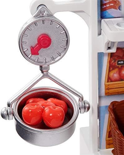 Barbie doll has all the ingredients for fun with a grocery store playset has everything needed to play out a trip to the supermarket! Pieces are designed with working features (like wheels on the cart and a working conveyor belt at the register) along with modern trends for realistic role-play and imaginative storytelling. Help Barbie doll grab the shopping cart -it really rolls! -and browse the display stand, with its bin for produce, shelves for food and a scale that moves for active role-play. Once the cart is full, head over to register 3. Load the items onto the conveyor belt and place the shopping bag on the hook; then slide the lever and watch Barbie doll's purchases fall into the bag. There are so many meals and stories kids can cook up -especially with 20 food accessories to set up and shop. And a plug-and-play design keeps them in place so imaginations can focus on storytelling and all-day play. Barbie doll is ready for any adventure in the aisles wearing a sporty floral dress and white sneakers. Kids will love exploring the grocery store and the world with this supermarket playset because you can be anything with Barbie! Includes Barbie doll wearing fashion and shoes, checkout stand with register and working conveyor belt, display case, rolling shopping cart, shopping bag and food pieces. Doll cannot stand alone. Colors and decorations may vary.