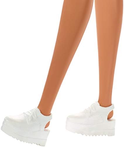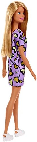 Barbie doll is easy to love wearing a t-shirt dress with a signature heart-print -a pair of white platform sneakers adds another trendy touch. Kids can tell all kinds of stories with this versatile look because when a girl plays with Barbie, she imagines everything she can become! Colors and decorations may vary.