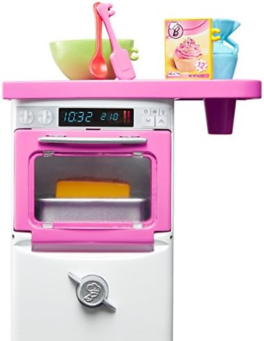 Cook up fun with a baking play set featuring Barbie doll and an oven with magical fun -- the timer dings, the door works, the pound cake and the cupcakes "rise" and the tops of the cupcakes have color-change icing!