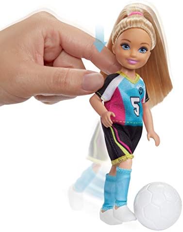 Barbie Dreamhouse Adventures Chelsea Doll, 6-Inch Blonde in Soccer Uniform, with Soccer Playset and Accessories, Gift for 3 to 7 Year Olds