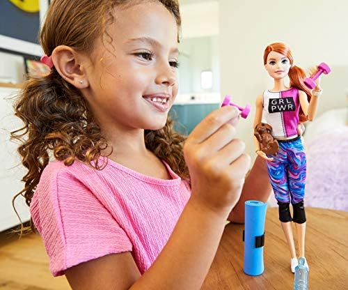 Barbie doll knows the way to be one's best is to give yourself the best care! This fitness-themed doll and accessory set celebrates one of her favorite ways to recharge -it includes a doll, a puppy and themed toys that let kids play out a classic moment of self-care. Barbie doll wears an athleisure look and has lots of storytelling pieces to encourage exploration and play. Some accessories have a handle Barbie doll can hold for easy role-play fun, and others, like the smaller weights, fit her puppy so they can keep fit together! Kids will love expanding their worlds with the Barbie wellness dolls. Kids can collect them all to expand the possibilities even more because when a girl plays with Barbie, she imagines everything she can become (each sold separately, subject to availability).