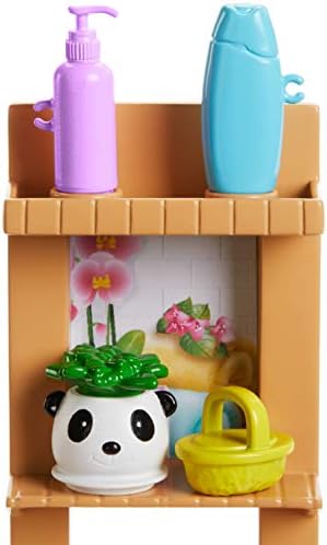 Barbie doll knows the way to be one's best is to give yourself the best care! This spa-themed playset celebrates one of her favorite ways to recharge: a fizzing bath. It comes with Barbie doll, a puppy, a spa tub and accessories to play out a real fizzy bath. Simply fill the tub with water, place Barbie doll inside and add one of the five included glittery fizz packs to see the water bubble, just like in a real spa! Barbie doll can relax with accessories that include a tub tray, bath products, a loofah, a back brush and a towel. The spa is calming, too, with a wood-inspired frame complete with a panda planter. There's lots of space for puppy to sit, plus spots to store the accessories. Some pieces have a handle the doll can hold to encourage easy role-play fun. Barbie doll wears a swimsuit with a wrap-around towel and features extra flexibility for realistic posing and active play. Kids can collect all the Barbie wellness dolls to explore self-care and expand their worlds because when a girl plays with Barbie, she imagines everything she can become! Includes Barbie doll wearing wrap-around towel, puppy, tub, spa frame, five glittery fizz packs and accessories. Doll cannot stand alone. Colors and decorations may vary.