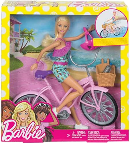 With Barbie and her pretty bike that can really ride, the fun comes to the roll! The pink bike with silver accents, bicycle basket and purple saddle encourages imaginative play worlds. With a clip on the seat, Barbie can sit firmly on the saddle and children can actively spin with their rounds. Your hands fit into the handlebar grips and your feet can be inserted into the pedals. Simply push and go: Barbie's legs move around the waist and knees so your feet move with the pedals as the wheels roll forward. There are so many places to discover! Barbie is perfectly equipped for the action-packed ride. She wears a colourful jumpsuit with ruffles and ice print. White trainers, a watch and a helmet are ideal for cycling and a water bottle (which fits in the bicycle basket) ensures that the imagination is not limited to the smallest detail. Whether it's just a short trip or a whole day of adventure - with Barbie and her bike, every game comes to the roll! Includes Barbie with fashion and accessories as well as bicycle with basket and helmet. The doll cannot stand alone or drive. Subject to variations in colour and design.