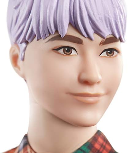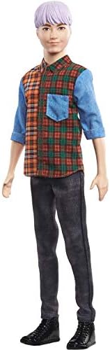 Barbie Ken Fashionistas Doll #154 with Sculpted Purple Hair Wearing a Color-Blocked Plaid Shirt, Black Denim Pants & Boots, Toy for Kids 3 to 8 Years Old