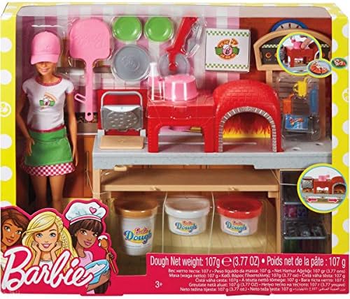 ​Cook up fun with a pizza play set that comes with Barbie doll, an oven with creative working features and all the ingredients to make, "bake" and serve pizza, including three different colors of dough!