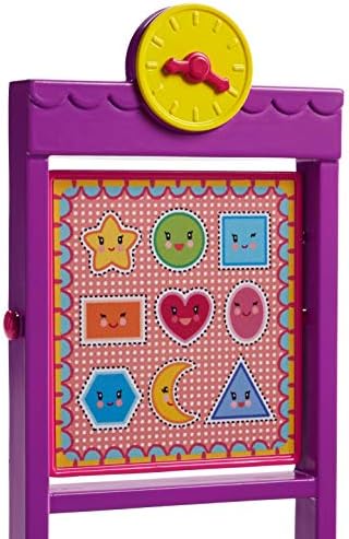 The Barbie teacher doll and playset comes with a student doll and classroom piece that has a desk and shelves below and flipping blackboard above -simply turn to change the lesson.