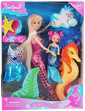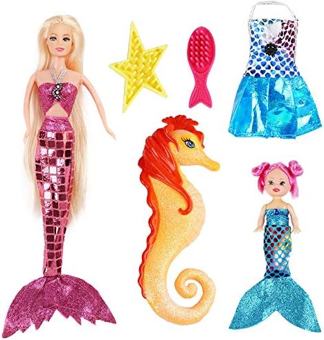 💃SET INCLUDES- ✔one 12" Mermaid doll ✔one 3'' little mermaid ✔seahorse ✔1 piece of vogue dress ✔ 2 lovely brushes(starfish & fish)