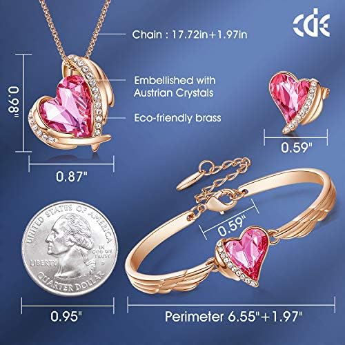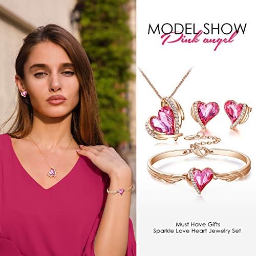 ❤PINK ANGEL'S HEART DESIGN❤ These glittering crystals shimmer with the slightest movement and sparkle even in the lowest light settings. This dazzling jewelry set features a heart design with an embellished with crystals from Austrian crystal at center, creating a vivid image of an angel's glistening heart.