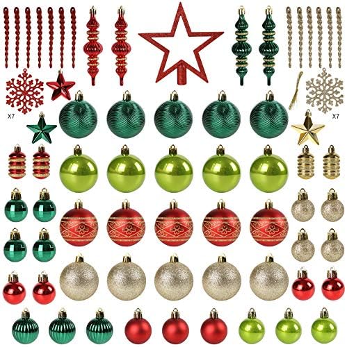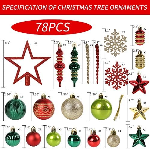 Christmas Tree Ornaments Set of 78pcs Shatterproof Red Green and Gold Christmas Ball