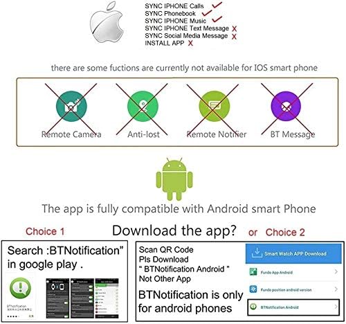 Choice 2: USE as Smartwatch/ NO SIM CARD Needed/ Android APP download link https://amzn.to/31gvBCo ANDROID OS 4.0 + Smartphone(ANY BRAND) or IOS 8.0+ Iphone Needed. With Bluetooth(find in "setting" menu) function activated. ALL FUNCTIONS are AVAILABLE for Android OS Smartphone(Any Brand), with Android APP installed. SEE DESCIPTION ABOVE for "How to install Android APP". PLEASE NOTE: IPHONE NEEDS NO APP/ IPHONE CAN ONLY SYNC Calls/Call log/Phonebook/Music CAN NOT SYNC TEXT Messages/Others