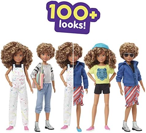 Mix and match the 6 pieces of doll clothing to transform the doll -the 2 tops, 1 hoodie jacket, 1 skirt, 1 pair of athleisure shorts and 1 pair of denim overalls feature premium details like working zippers and real pockets
