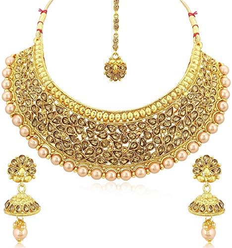 Crunchy Fashion Bollywood Style Gold Plated Traditional Indian Jewelry Necklace Set with Earrings