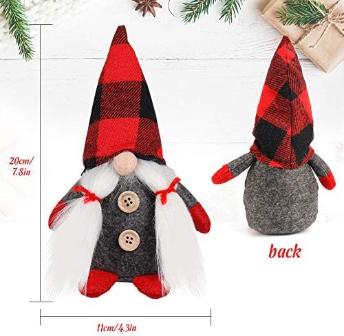 Adorable Design –Handmade. The Gnome features long plush white beard & hair. Plaid red and black hat adds festive atmosphere. The size is about 7.5 inch tall from hat top to bottom. Compact size