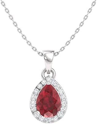 Diamondere Natural and Certified Pear Gemstone and Diamond Halo Drop Petite Necklace in 14k White Gold | 0.33 Carat Pendant with Chain