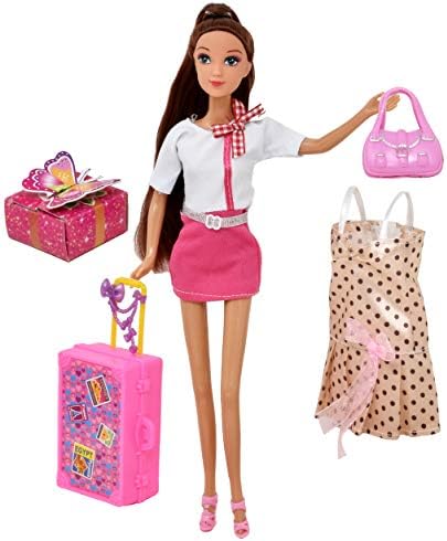 FLIGHT ATTENDANT FASHION DOLL – Going away? The perfect doll to give your little one with adorable accessories including traveling suitcase, gift box, purse and change of clothes.