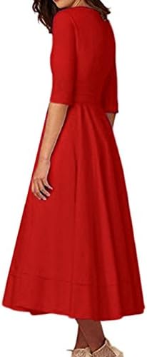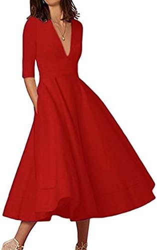Feature: Women Sexy Deep V Neck 3/4 Sleeve,Solid Color Flare and Fit,Vintage Retro A Line Swing Long Maxi Cocktail Elegant Formal Work Dress.