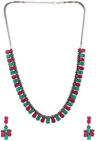STYLE: Make a style with this trendy unique women's wedding bridal oxidised plated necklace set fashion costume accessories featuring CZ Cubic Zirconia. Easy to wear using an adjustable closure for secure and perfect fit. PERFECT MATCH: Perfectly fit for wedding gown dress or any occasions such as dinner party new year eve birthday party wedding festival celebration graduation concert anniversary dancing ball baby shower beach funny prom formal events and so on or even everyday wear. PERFECT GIFT Jewellery For Any Occasion for yourself or your loved ones GIFT FOR HER! - Ideal Valentines Birthday Anniversary gift for someone you LOVE, girl friend . The product comes in a beautiful Elegant Ready-to-Gift Box. CARE INSTRUCTIONS: Avoid contact with heat, chemicals and water. Clean with dry cotton cloth. Pack in an air tight container/ pouch after use. It is advisable to wear the jewellery after makeup.