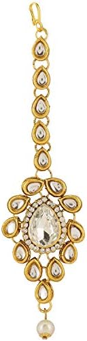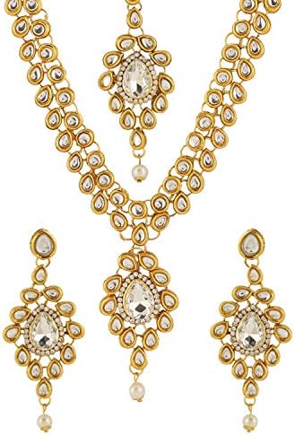 Efulgenz Indian Bollywood 14 K Gold Plated Kundan Choker Multilayer Neckalce Earrings Maangtikka Wedding Bridal Jewelry Set
