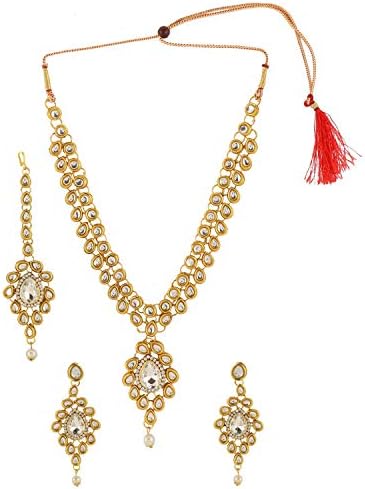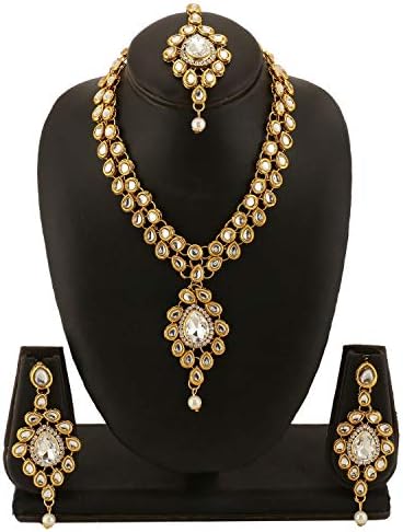 Traditional, vintage, boho, Ethnic, elegant statement chocker necklace earrings fashion novelty wedding bridal jewellery costume accessories for women, ladies and girls. Delicate eye catching classic unique exotic jwellery. Traditional Royal Setting Style Of India Used By Mughal Emperors and Kings In Rajasthan. Embellished with flat cut kundan stones. Easy to wear using an secure closure for perfect fit. Skin Friendly, environmental friendly. Durablility with the look of fine premium quality jewellery. Wear this with your gorgeous traditional dress, saree, lehenga, gown on any wedding, party, engagement, ring ceremony, prom, anniversary or any festive or special occasion. Perfect Gift For Any Occasion for yourself or your loved ones, GIFT FOR HER! Ideal Valentine's, Birthday, Anniversary gift for wife or girl friend . CARE INSTRUCTIONS: Avoid contact with heat, chemicals and water. Clean with dry cotton cloth. Pack in an air tight container/ pouch after use. It is advisable to wear the jewellery after makeup.