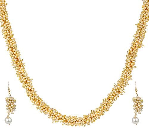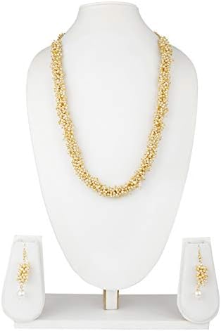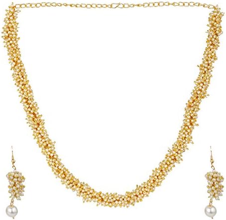 Efulgenz Indian Bollywood 14 K Gold Plated Faux Pearl Beads Bridal Strand Statement Necklace Earrings Wedding Jewelry Set