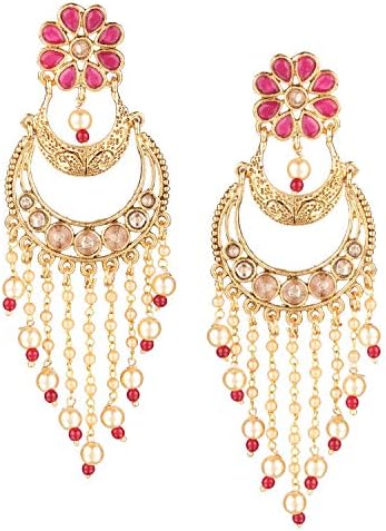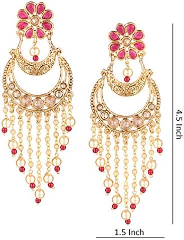 Efulgenz Indian Bollywood 14K Gold Plated Traditional Wedding Crystal Pearl Tassel Chandelier Chandbali Earrings Jewelry Set