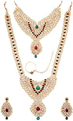 Traditional, vintage, boho, Ethnic, elegant statement chocker necklace earrings fashion novelty wedding bridal jewellery costume accessories for women, ladies and girls. Delicate eye catching classic unique exotic jwellery. Traditional Royal Setting Style Of India Used By Mughal Emperors and Kings In Rajasthan. Embellished with flat cut kundan stones. Easy to wear using an secure closure for perfect fit. Skin Friendly, environmental friendly. Durablility with the look of fine premium quality jewellery. Wear this with your gorgeous traditional dress, saree, lehenga, gown on any wedding, party, engagement, ring ceremony, prom, anniversary or any festive or special occasion. Perfect Gift For Any Occasion for yourself or your loved ones, GIFT FOR HER! Ideal Valentine's, Birthday, Anniversary gift for wife or girl friend . CARE INSTRUCTIONS: Avoid contact with heat, chemicals and water. Clean with dry cotton cloth. Pack in an air tight container/ pouch after use. It is advisable to wear the jewellery after makeup.