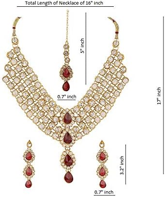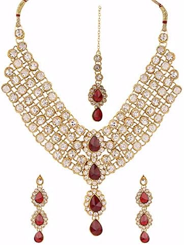 Efulgenz Indian Bollywood Traditional 14 K Gold Plated Faux Rhinestone Crystal Choker Necklace Earring Maang Tikka Jewelry Set