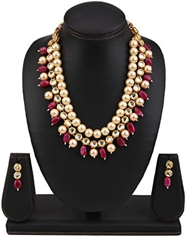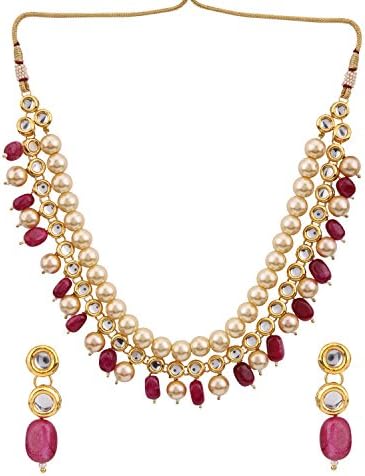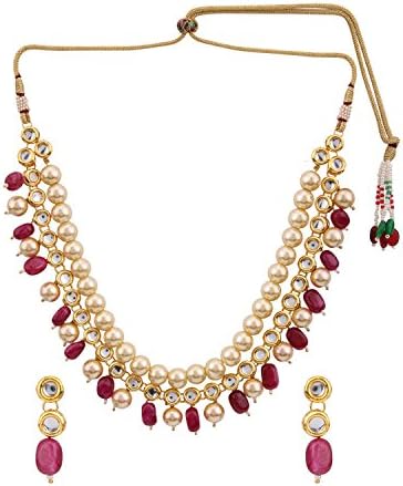 Efulgenz Indian Traditional 14 K Gold Plated Bollywood Faux Kundan Pearl Ruby Beaded Bridal Choker Necklace Earrings Wedding Jewelry Set