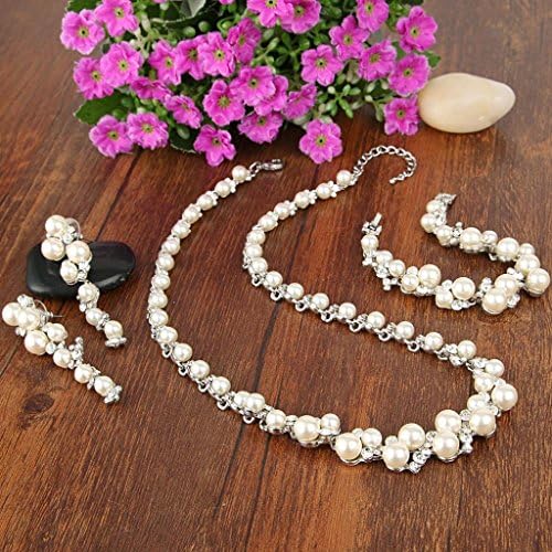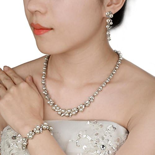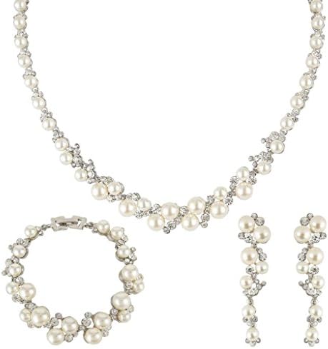 EVER FAITH Simulated Pearl Crystal Bridal Necklace Earrings Bracelet Set Clear