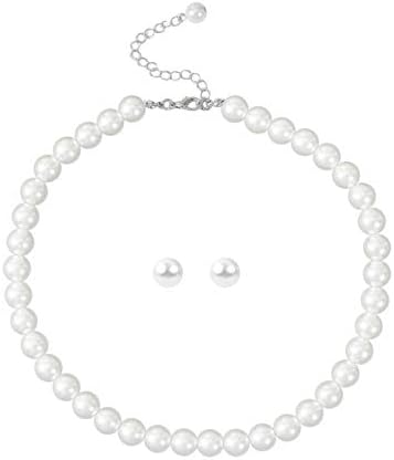 This pearl necklaces earrings set includes 8mm pearl necklace and 8mm pearl stud earrings.