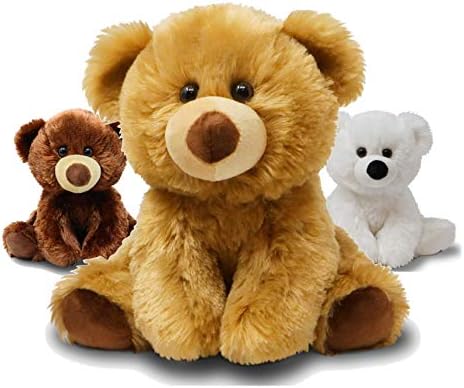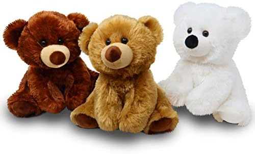 Fluffuns Teddy Bear Stuffed Animal - Teddy Bears Stuffed Animals 9 Inch Stuffed Bear 3-Pack (Brown, Light Brown & White)