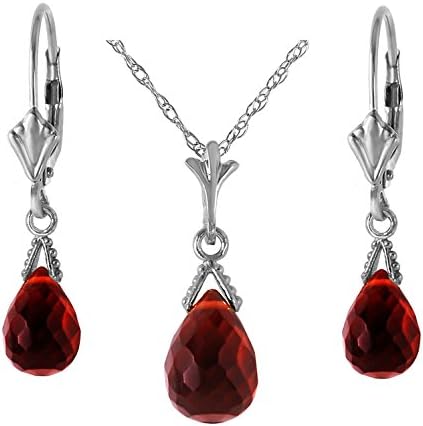 Galaxy Gold 14k White Gold Jewelry Set: Natural Briolette Garnet 20" Pendant Necklace and Dangle Earrings