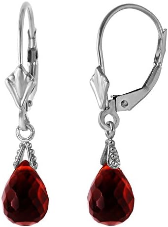 Own this gorgeous 14k white gold jewelry set featuring beautiful necklace and dangle earrings with briolette natural garnets. The dainty lever-back earrings are masterfully crafed in 14k white gold. The garnet is shaped into a lovely faceted briolette. The bail holding the earrings together is textured and stands out with flair. These earrings are very wearable and perfect for daily use. The 14k white gold necklace with briolette garnet is simple and elegant, making it a great choice for an January birthday present. The 20 inch long delicate rope chain supports the single stone of this necklace, a 2.25 carat briolette shaped garnet. The beaded pendant adds a feminine touch to this necklace that makes it anything but boring. This jewelry set is the perfect accessory to wear anywhere: to the office, to casual events, or even to more formal occasions.