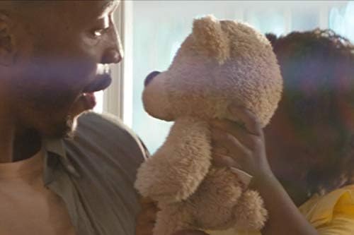 Fuzzy teddy bear with floppy arms and legs as well as cute sideways smile