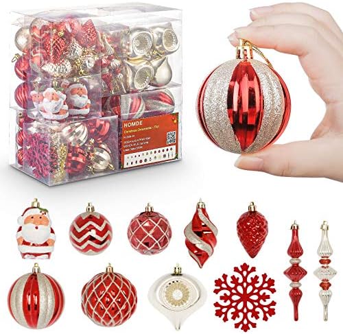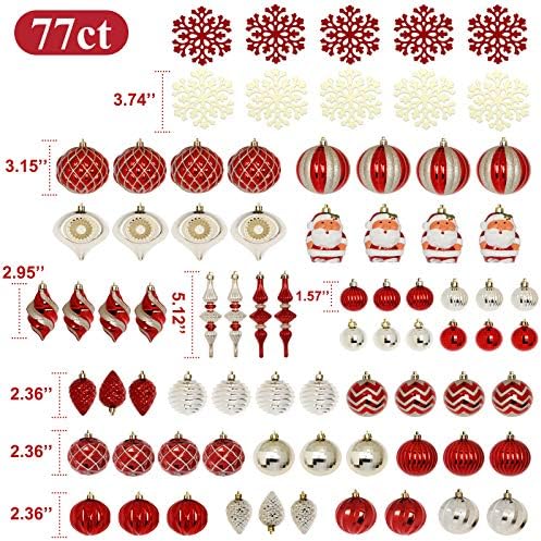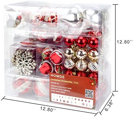 77CT TREE BALLS - 77ct Tree Balls in a variety of shapes and designs, will create more possibilities to your decoration and make your Christmas tree look more beautiful. For more information about the package contents, please scan the 2nd detailed list image on the left side of this page.