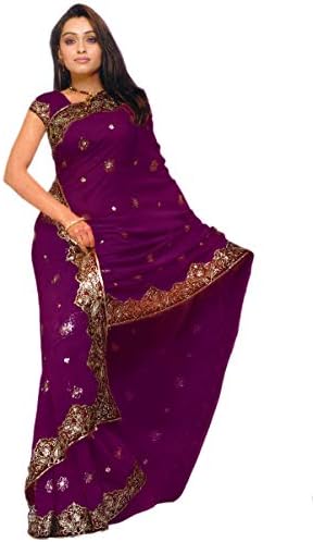 Indian Trendy Women's Bollywood Sequin Embroidered Sari Festival Saree Unstitched Blouse Piece Costume Boho Party Wear