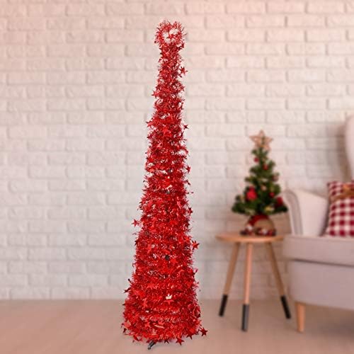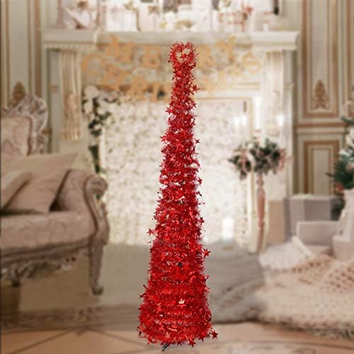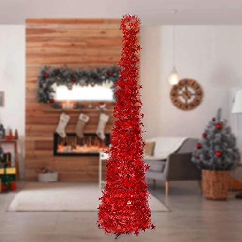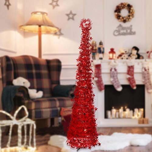 Indoor Christmas Tree Decorations, 5ft Vintage Cute Skinny Small Pop up Xmas Tree Decor for The Home Bedrooms Office(Red)