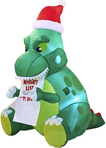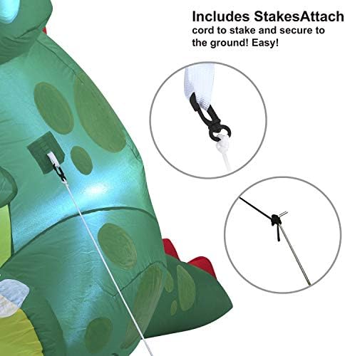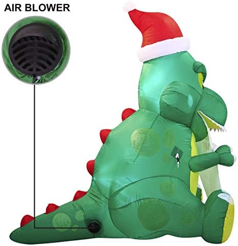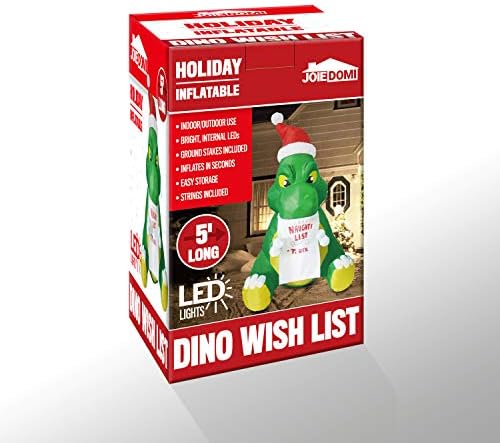 Joiedomi Christmas Inflatable Decoration 5 ft. Long Sitting Dinosaur Inflatable with Build-in LEDs Blow Up Inflatables for Christmas Party Indoor, Outdoor, Yard, Garden, Lawn Winter Decor. 5 ft. Long Sitting Dinosaur Inflatable comes with an extended cord, ground stakes, fastened ropes, built-in sandbags, and a plug with UL certification.Bright built-in LED lights. Light up in the evening for the best attraction to neighbors and guests.Premium Quality. Very easy and safe for kids to help decorate! Plug it in, everything pops up in a minute! Perfect for Christmas outdoor yard garden decorations, gift-giving event decoration, Winter wonderland night event. Ideal for Christmas event decoration, Holiday blow-ups, Christmas night event, Christmas decorations, Christmas prop, classroom decorations, and more.Providing a 100% satisfaction experience is our main priority to our customers. Feel free to message us through “contact sellers” if products don't meet your expectations. The celebrations start at JOYIN!