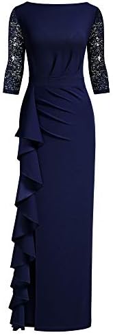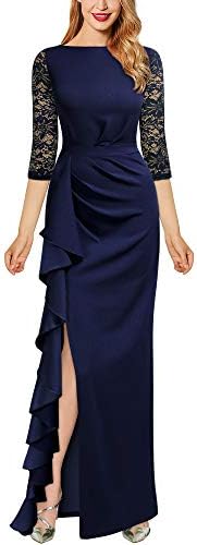 Size of dress is regular size for US standard measurment, please just choose the size you usually wearGreat for all occasions: cocktail wedding, evening party and formal eventsLace floral 3/4 sleeve,high waist back v style, high slit ruffles down cocktail formal maxi long dressSlim fitted to showcase your curve, very flattering and classy, zipper on the backCare Instruction: Wash in laundry bag with low temperature, warm iron if needed