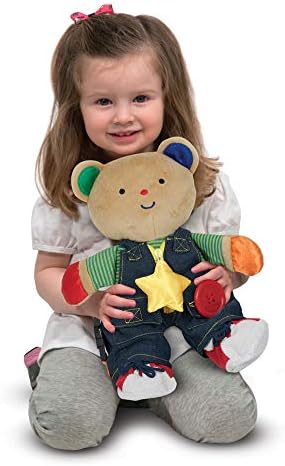 Toddlers and preschoolers learning the basics of self care and refining grasp and hand-eye coordination have met a cuddly match for their emerging skills! Adorable plush bear Teddy Wear comes clad in a removable outfit packed with closures--perfect for testing a little one's growing problem-solving and motor skills. Buttons, zippers, self-stick tabs, buckles, and laces will keep fingers working on a number of different levels, offering a beneficial mix of encouragement and challenge. A mix of textures adds lots of sensory input too, making this a terrific toy for kids of all abilities! Pediatricians recommend toys that encourage rich interactions between caregiver and child. This toy makes a great gift for 18-month-olds, 2-year-olds, 3-year-olds, 4-year-olds, and up. It's a perfect gift for baby showers, birthdays, and special occasions. Add a Melissa & Doug Wooden Latches Board to round out the play experience and give kids another engaging option for screen-free fun. For more than 30 years, Melissa & Doug has created beautifully-designed imagination- and creativity-sparking products that NBC News called “the gold standard in early childhood play.” We design every toy to the highest-quality standards, and to nurture minds and hearts. If your child is not inspired, give us a call and we'll make it right. Our phone number is on every product!