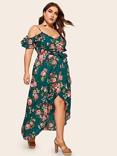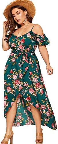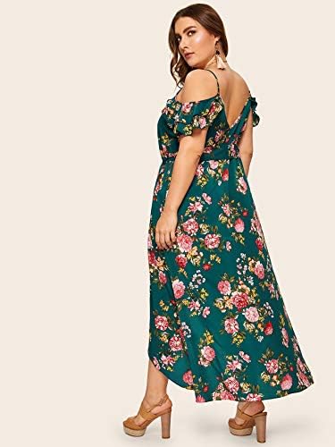 Milumia Women Plus Size Boho Floral Cold Shoulder Split Maxi Dress