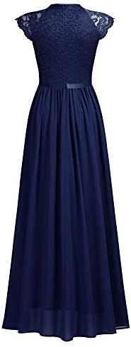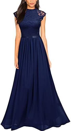 Lace Contrast Chiffon Style, Zipper On The Back,Long Dress