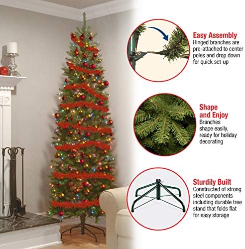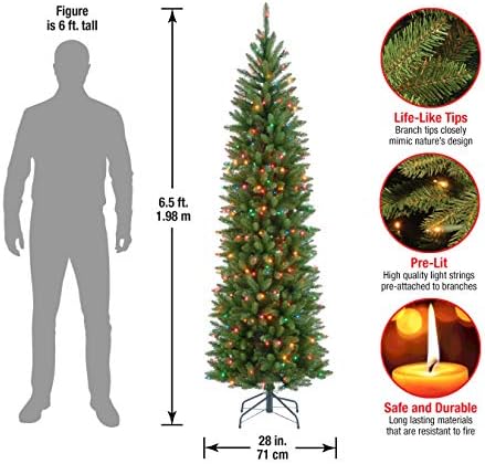National Tree Company lit Artificial Christmas Tree Includes Pre-strung Multi-Color Lights and Stand, Kingswood Fir Slim - 6.5 ft, Green