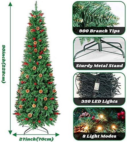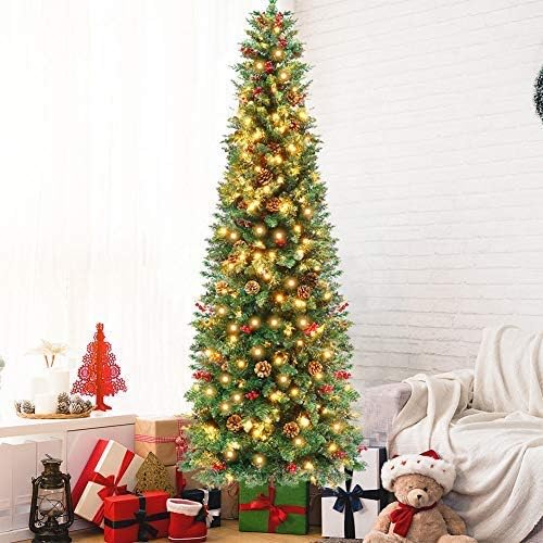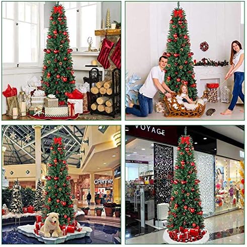 ◆Full and Realistic PVC - This Christmas pencil tree is made of fire-resistant and Eco-friendly PVC, which is safer for your family. Besides, 900 Branch tips with 55pcs pine cones and 55pcs artificial berries for each Xmas tree will look more full and help emulate a real Christmas tree