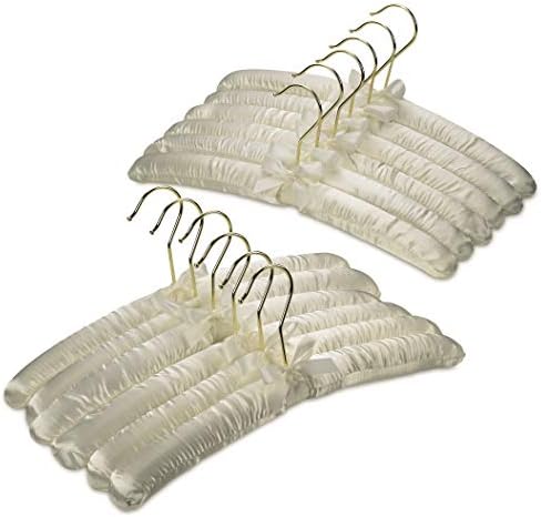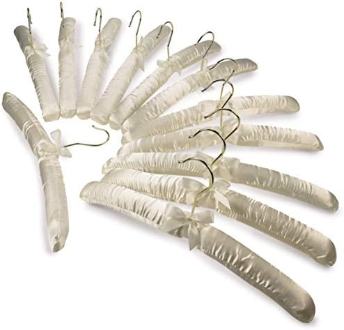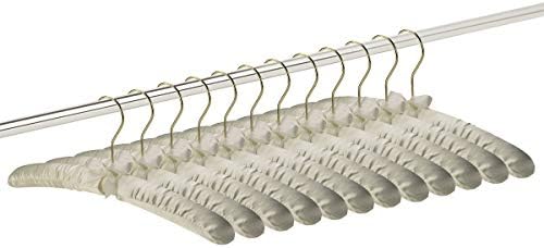 Padded Hangers Anti Slip - Premium Heavy Duty Thick Satin Soft Fabric No Shoulder Bump Hangers with Gold Hooks for Women's Clothes, Sweaters, Dresses, Clothing, Weddings, Lingerie - Ivory, Set of 12